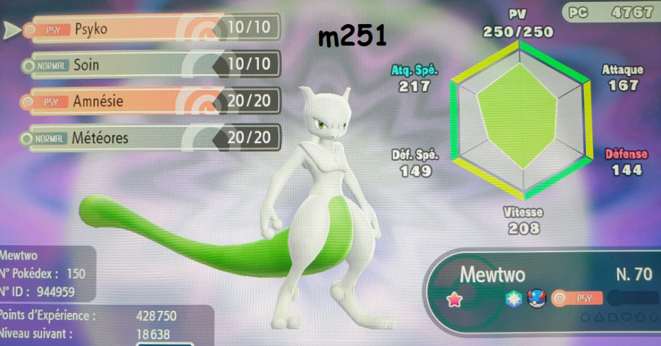 Je voulais encore avoir un Mewtwo shiney, de préférence sur un jeu récent.