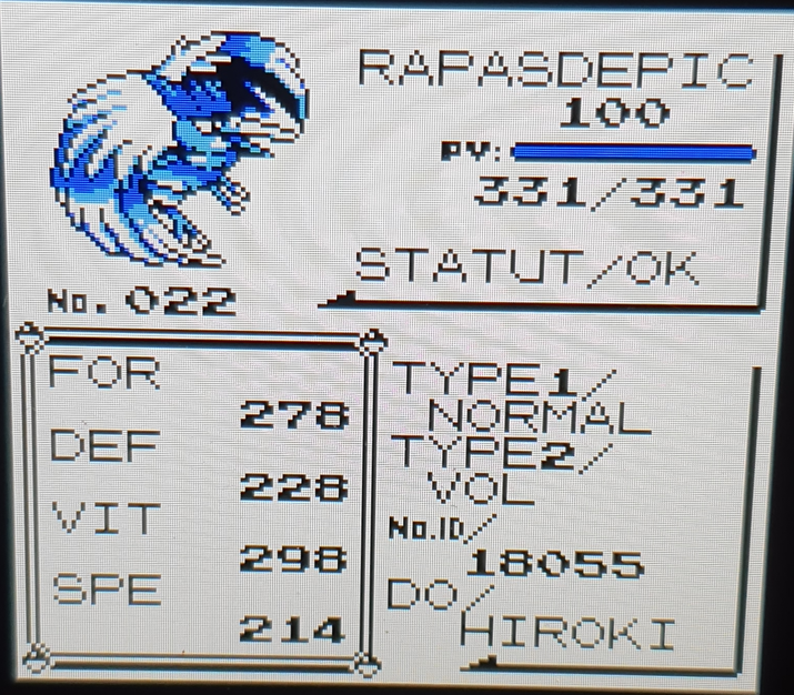 Comme vous avez pu le voir, je met les IVs maintenant. Sur le Périple RBJ sur Skyrock je ne l'avais pas fais par flem, mais c'est quand même mieux comme ça. Je n'avais pas non plus préciser que le max sur 1g c'est 15 et pas 31. 2 point de stats supplémentaires par IV. Les EVs n'existe pas encore, c'est un système de barre d'exp qui est cacher sous chaque stats, c'est pour ça qu'on parle de stats exp. Elle ce remplis en combattant comme les EVs et on absorbe la base stats du pokémon vaincu pour un total de 65535 stats exp sur chaque stats. Les 65 milles équivaux à 252 EVs sur les nouveaux jeux.