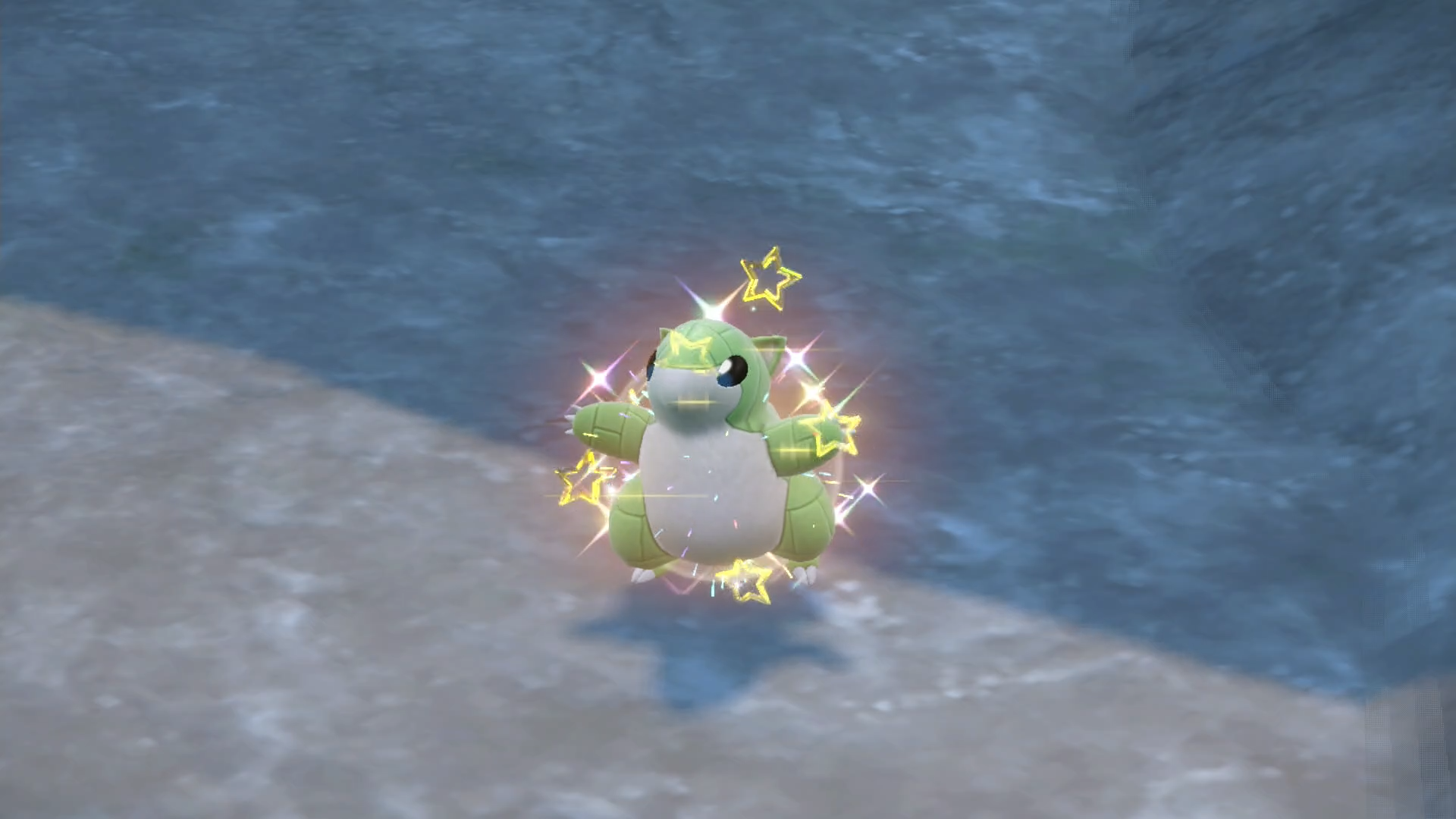 Je continue l'entrainement des Pokémons de Hisui. Il ne m'en manque plus beaucoup maintenant. Pendant l'entrainement je suis tomber sur un Sabelette Shiney!